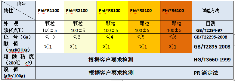 Pht?-R1100、Pht?-2100、Pht?-3100、Pht?-5100、、Pht?-6100精C5系列石油樹脂是適用于熱熔型路標(biāo)漆的改性石油樹脂。它能增強涂料的韌性、硬度及附著力,并形成平滑的漆面,而且通過添加助劑,使樹脂在四季中始終處在一種穩(wěn)定的狀態(tài),并和松香類樹脂、萜烯類樹脂、碳九石油樹脂混溶性佳。在高檔油漆復(fù)配中,可使油漆漆膜形成耐水、耐酸耐堿、耐紫外線、耐化學(xué)品的特性,并使外觀光亮度及干燥性都有明顯改善,其中Pht?-R1100、Pht?-R2100經(jīng)過氫化或半氫化的碳五石油樹脂,外觀顏色水白色,200度3個小時熱穩(wěn)定性不變色。是生產(chǎn)更高檔品質(zhì)的熱熔路標(biāo)涂料的助劑,性能更佳。